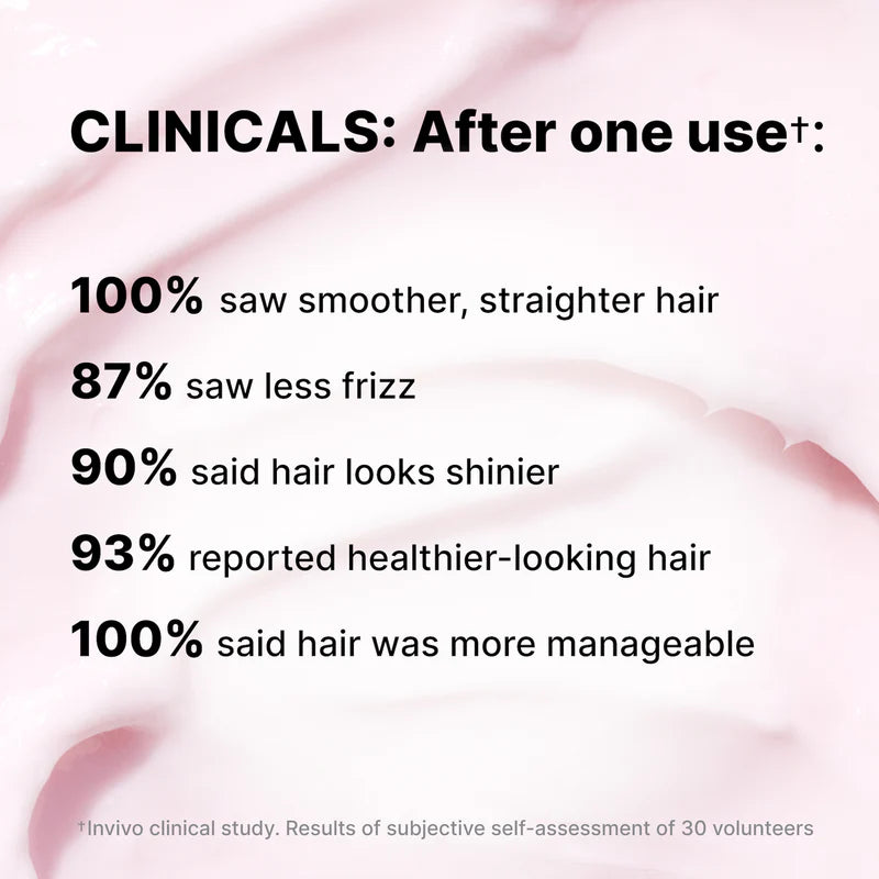 Anti-frizz, anti-damage hair smoothing treatment refinishes and visibly repairs fluffy, frizzy, damaged strands. Delivers flawless, smooth, swing-y, polished results – hair looks reborn!