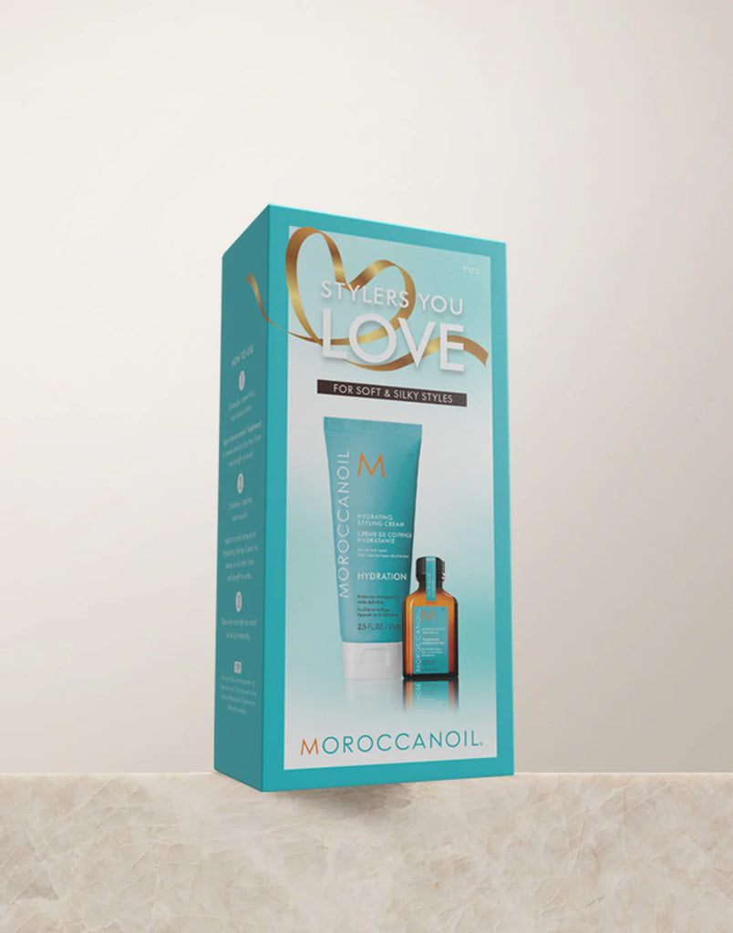 Achieve sleek, silky-soft tresses with the Moroccanoil Stylers You Love Set. Featuring two formulas, each enriched with nourishing argan oil, the kit leaves the hair with a silk-like appearance.